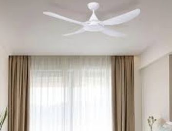 Includes supply & installation of a 48" 4 blade white AC ceiling fan. Includes direct replacement of an existing ceiling fan and replacement of the wall capacitor. Includes 6 year warranty.